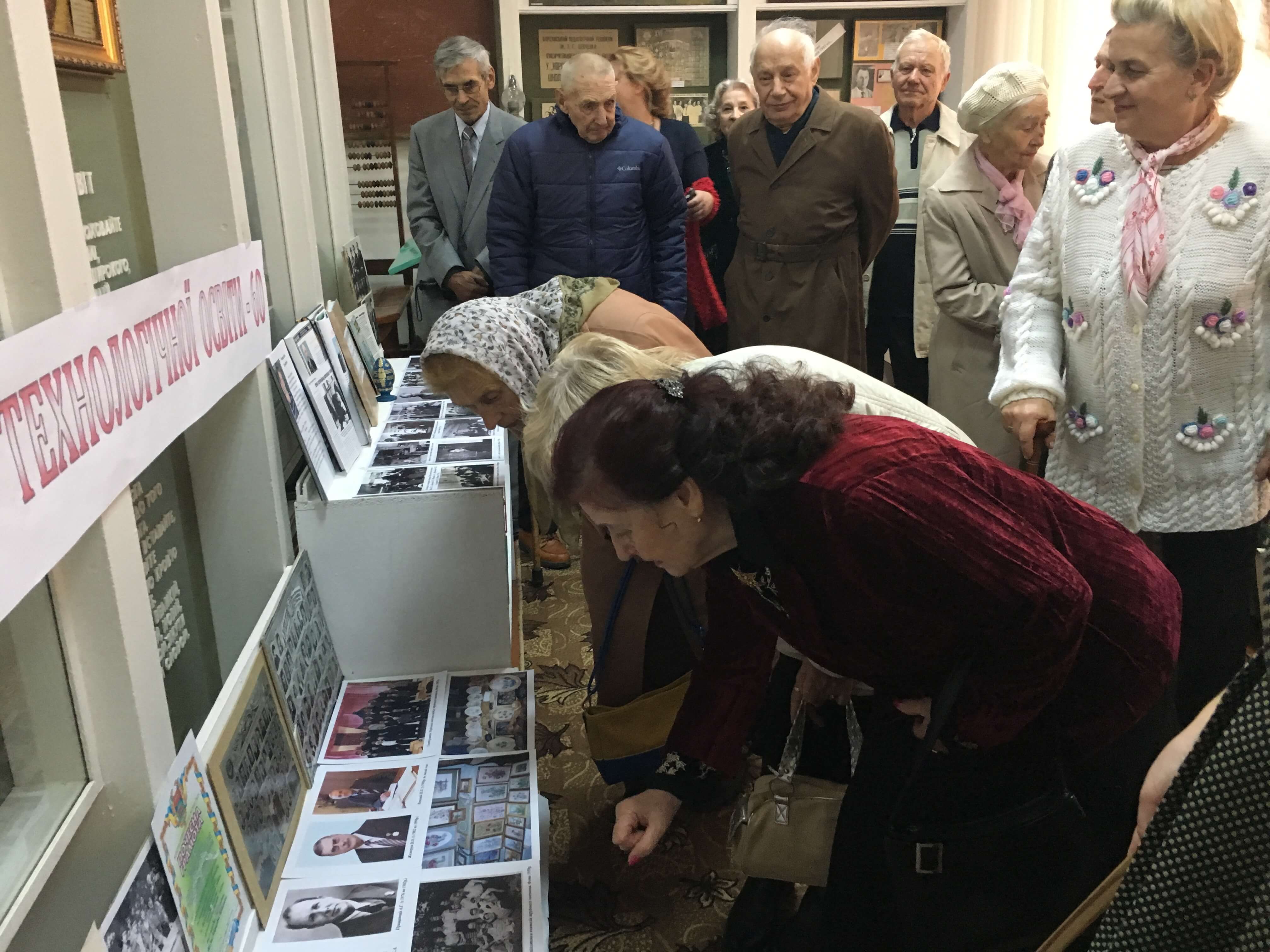 Ветерани шукали знайомі обличчя на архівних фотознімках у музеї коледжу.
